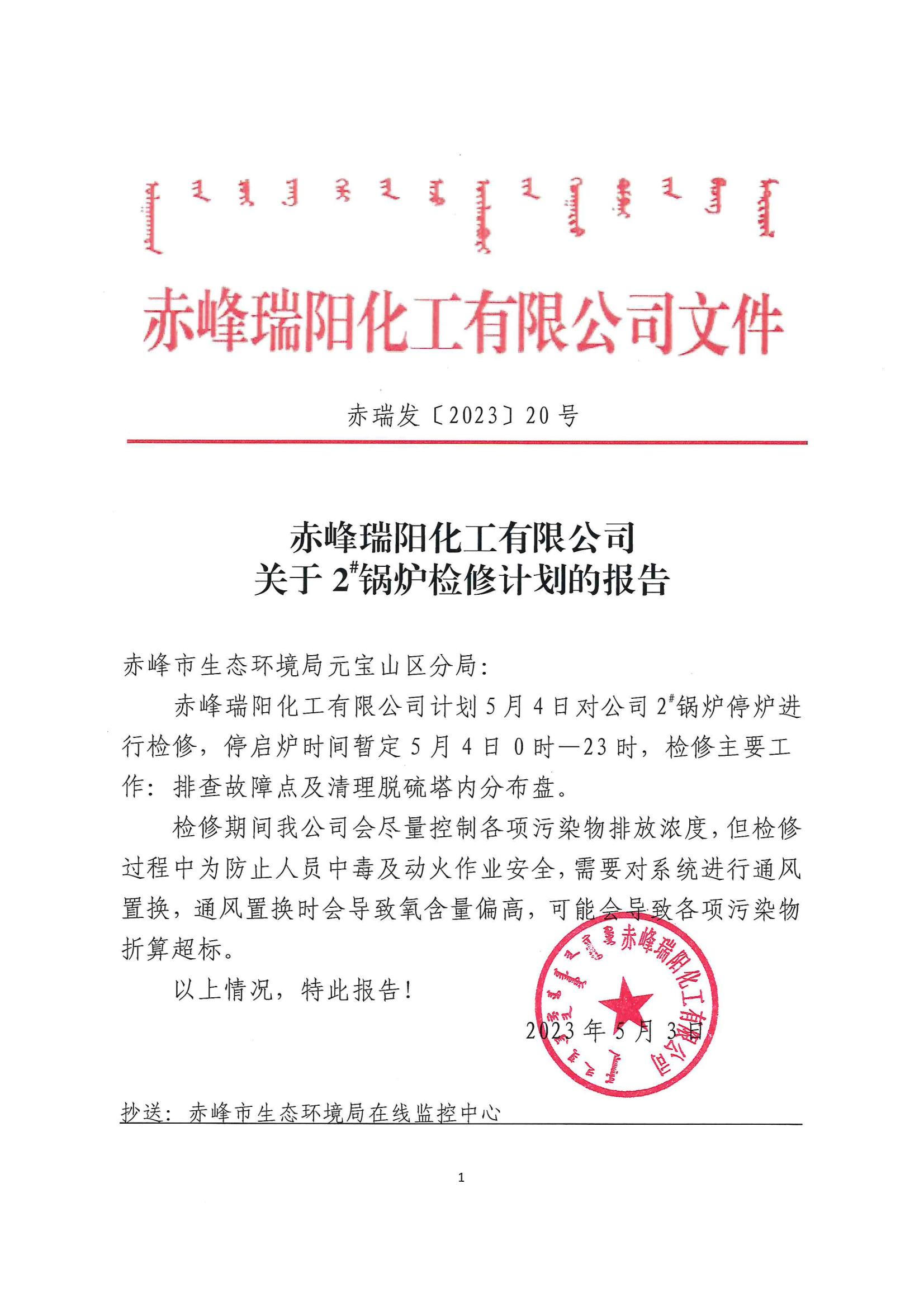 赤峰瑞陽(yáng)化工有限公司2#鍋爐計(jì)劃?rùn)z修報(bào)告