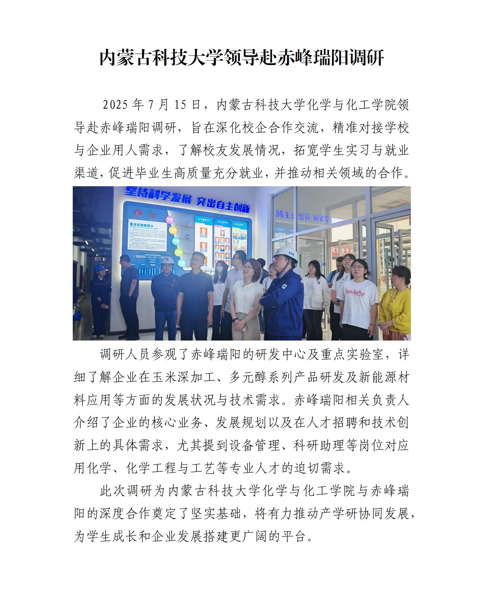 內(nèi)蒙古科技大學領導赴赤峰瑞陽調(diào)研
